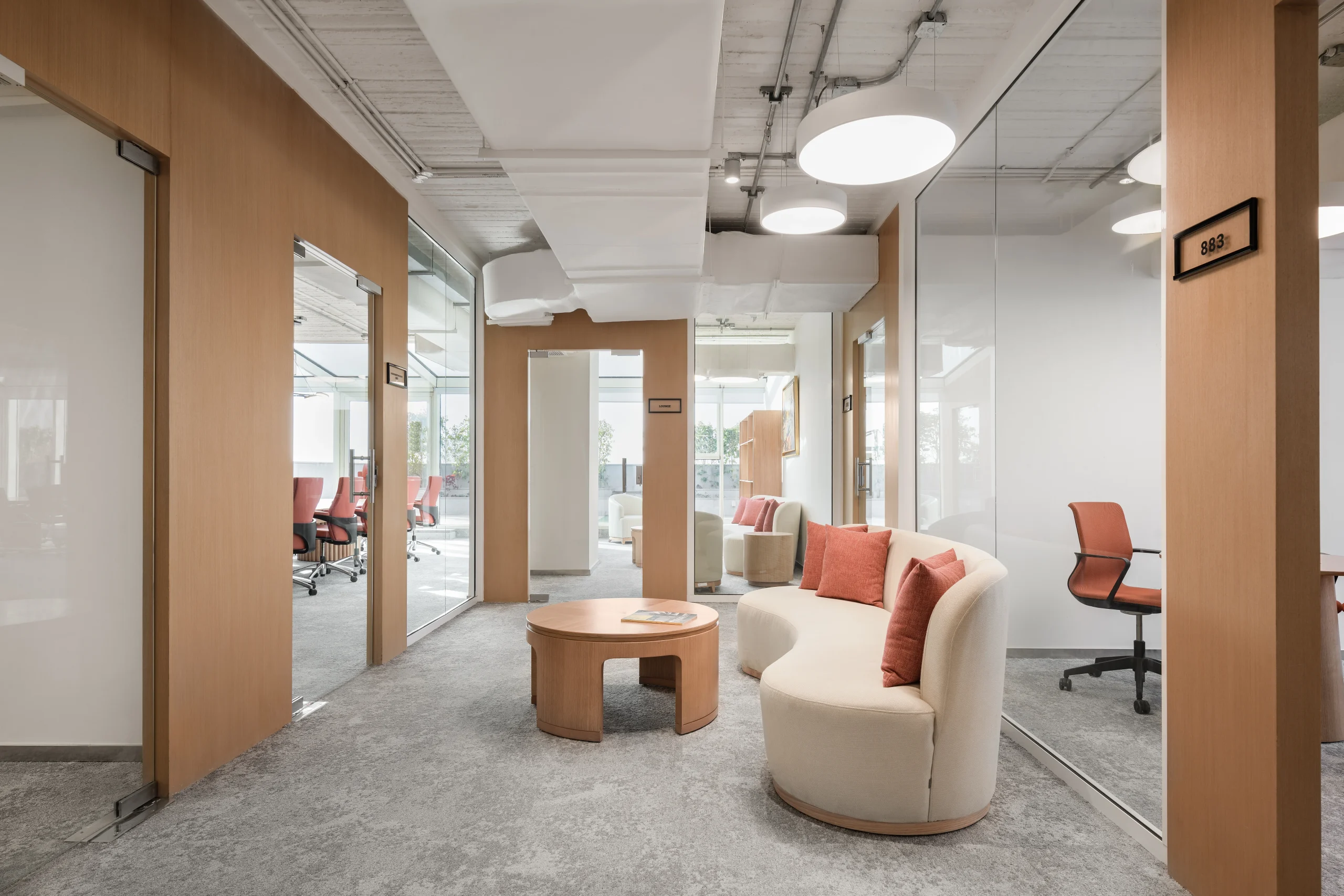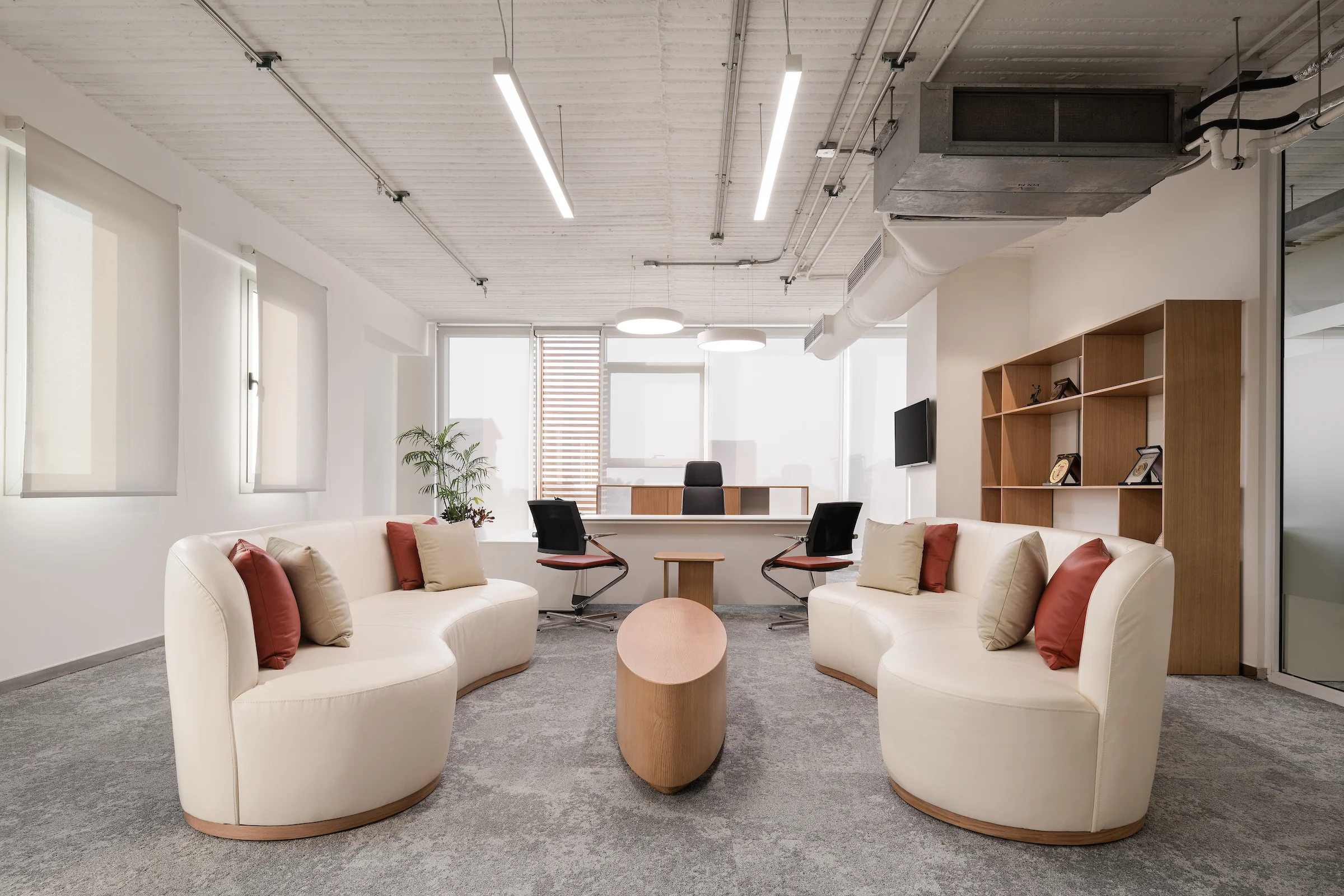 Designed for operational efficiency, the multi-floor workspace blends executive, client, and administrative areas with a welcoming, human-centric atmosphere.
